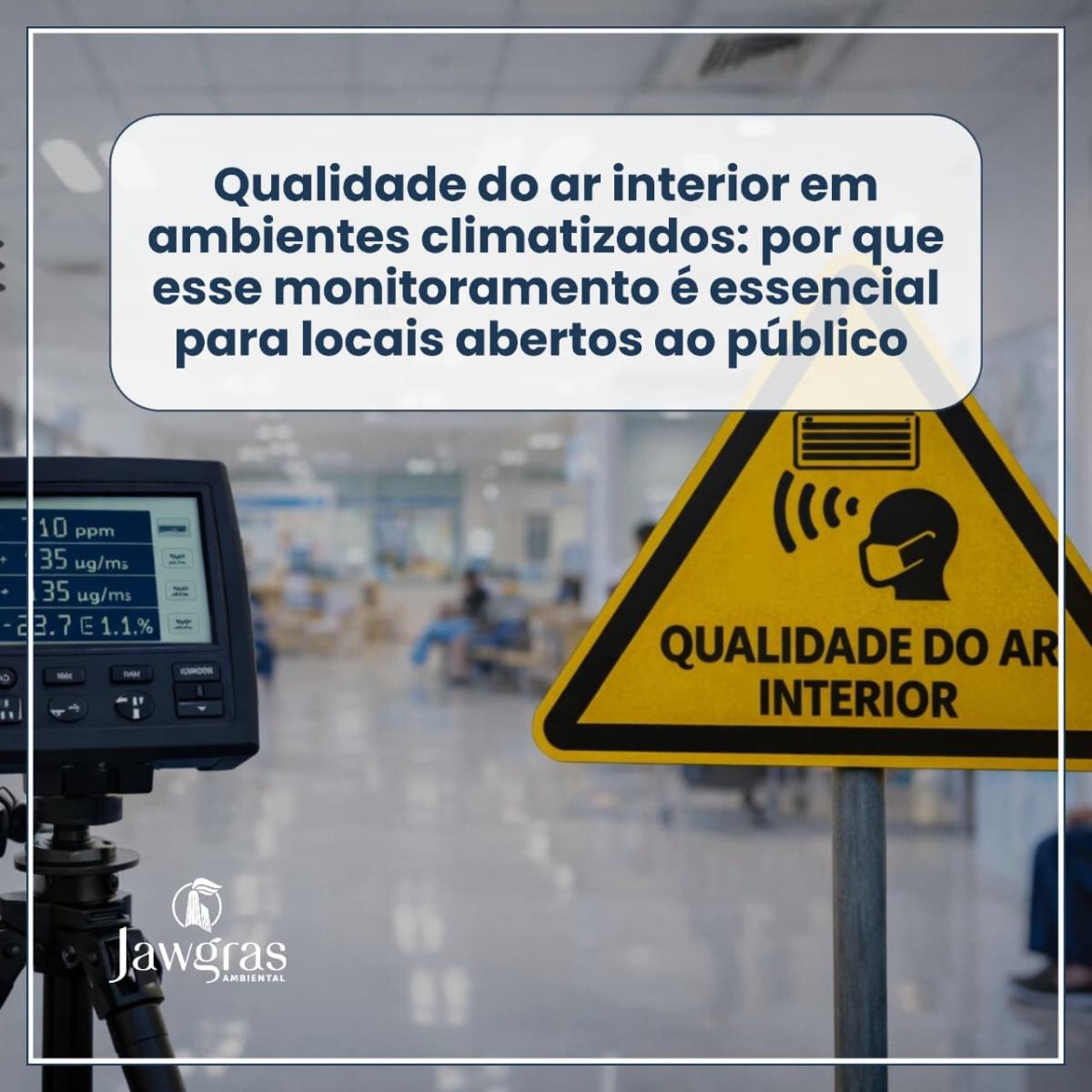 A Jawgras Ambiental realiza o monitoramento da qualidade do ar interior em ambientes não residenciais climatizados artificialmente, seguindo as diretrizes da ABNT NBR 17037 e atendendo às exigências dos órgãos de Vigilância Sanitária.Os laudos técnicos são elaborados com clareza e responsabilidade, facilitando a compreensão por gestores, responsáveis técnicos e autoridades sanitárias.